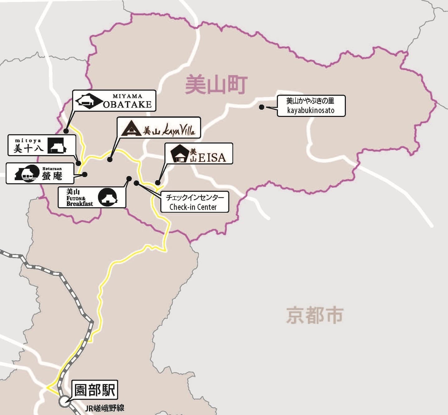 | BY TRAIN | If you are using public transport you need to take a train to Sonobe from Kyoto (approx.. 46 minutes). With advance reservation, we will pick you up at Sonobe Station (approx. 35 minutes drive from Sonobe to Miyama). We will meet you at the ticket gate in Sonobe station. Please let us know your approximate arrival time as soon as you can (Please note advance reservation is required for pick-up service.).We appreciate for your cooperation and understanding that there is a possibility of sharing a car with other guests. |