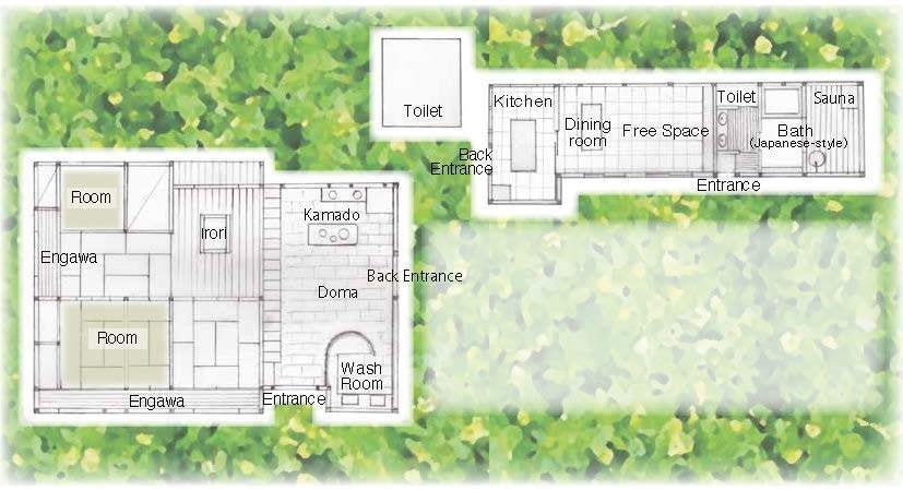 Hotaruan is a 5,000m2 (1,600 sq. m) property that combines modern comfort with a historic atmosphere, with a spacious cypress bath, sauna, and a kitchen equipped with the latest equipment. You can enjoy a tranquil moment surrounded by the changing scenery of the four seasons.